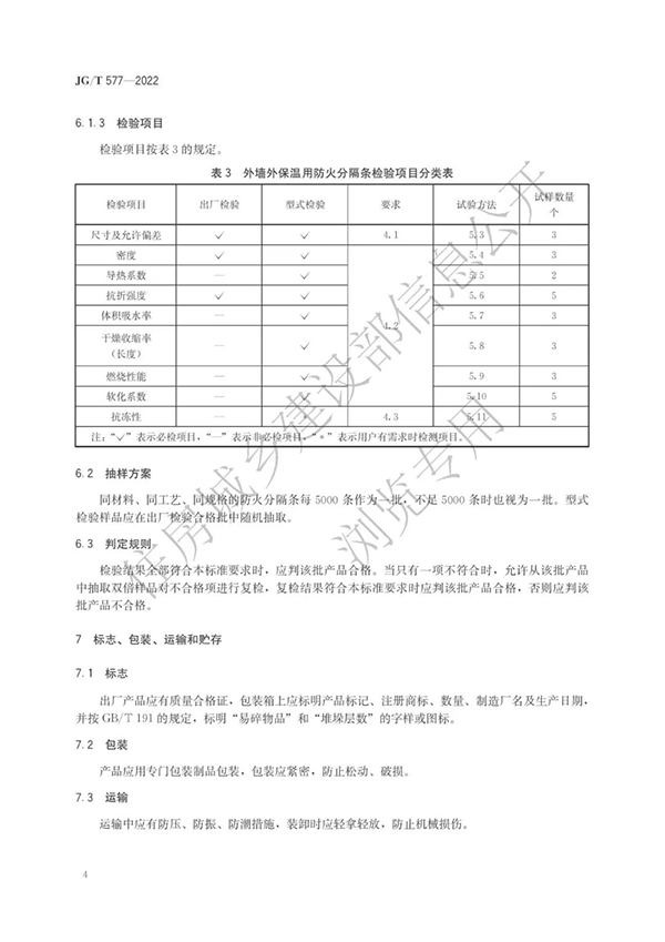 本標準規定了外墻外保溫用防火分隔條的術語和定義、要求、試驗方法、檢驗規則、標志、包裝、運輸和貯存。